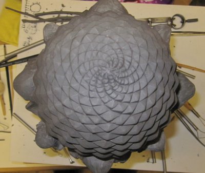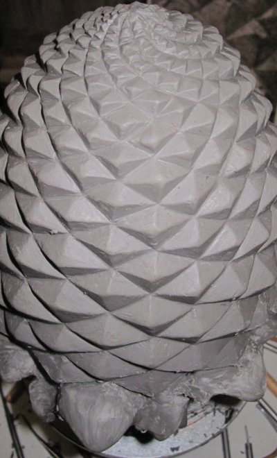 The spirals on a pineapple involve something called the Fibonacci series, a mathematical sequence of numbers which is commonly replicated in nature. To find out more about this facinating concept in simple terms click here or for a more detailed explanation go to Wikipedia. Or you may just choose to admire the beautiful, elegant, complex symettry of the pineapple.
